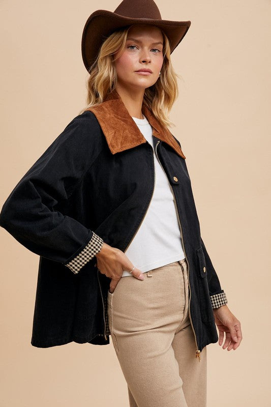Corduroy Collar Barn Cotton Lined Jacket Taupe