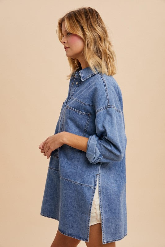 Oversized Plaid Brown Button Down