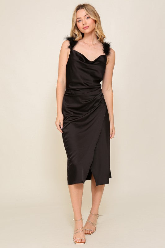 Floral Tie Back Slit Midi Dress Brown