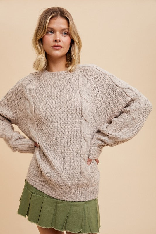 Cable Knit Oversized Pullover Sweater TAUPE