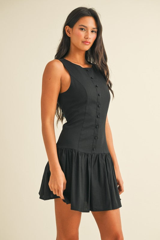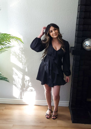 Lace Trim Long Sleeve Mini Dress Black