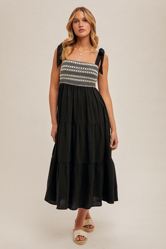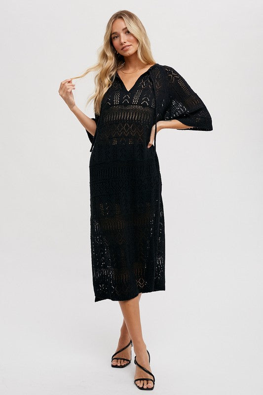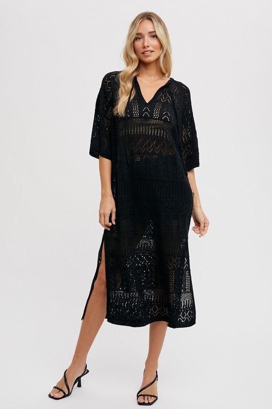Lace Trim Button Down Maxi Dress