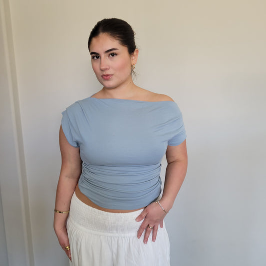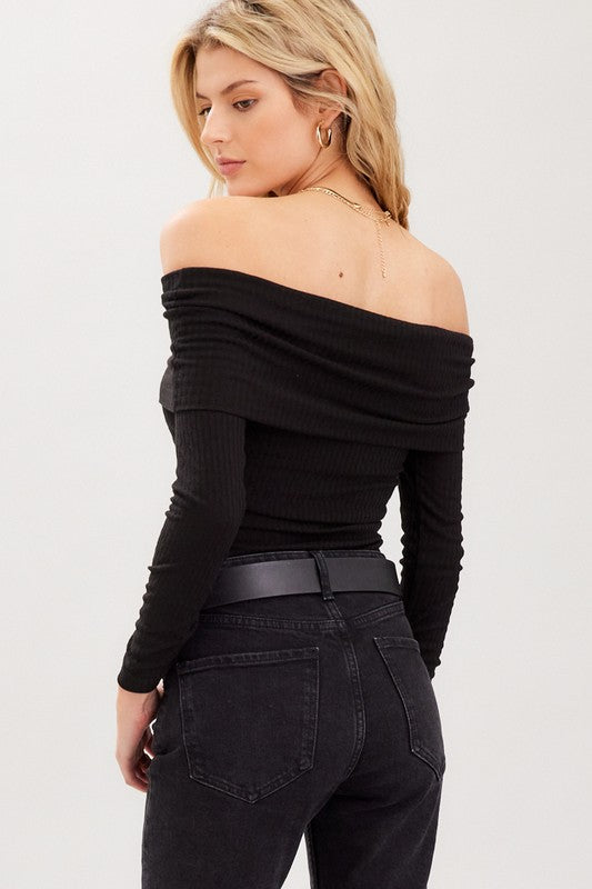 OFF THE SHOULDER OVERFOLD KNIT SWEATER CROP TOP 2 COLORS