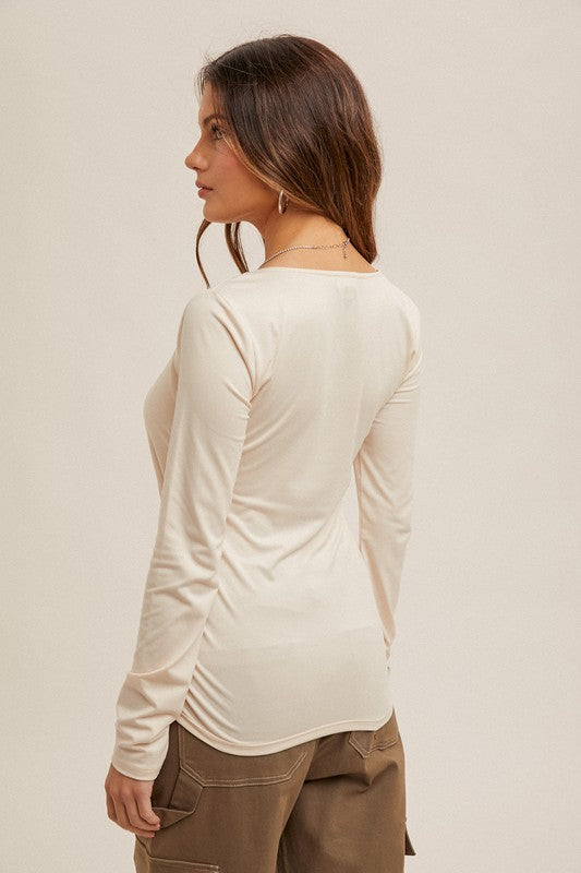 Thermal Drop Sleeves Top Oatmeal