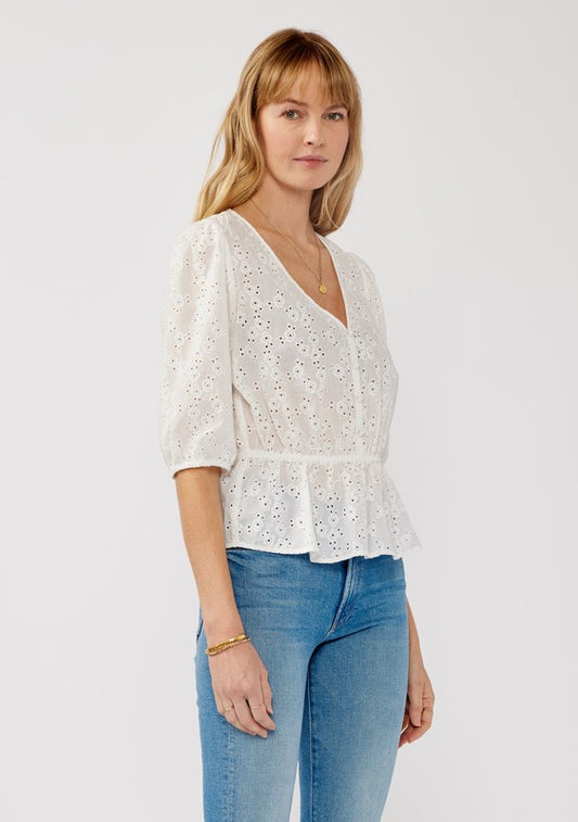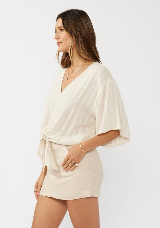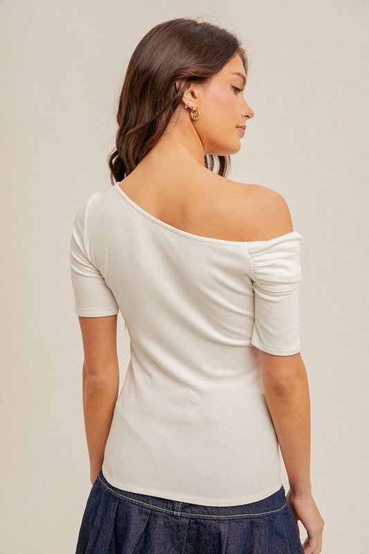 V-neck Dropped Shoulder Half Sleeve Sweater Top Cream