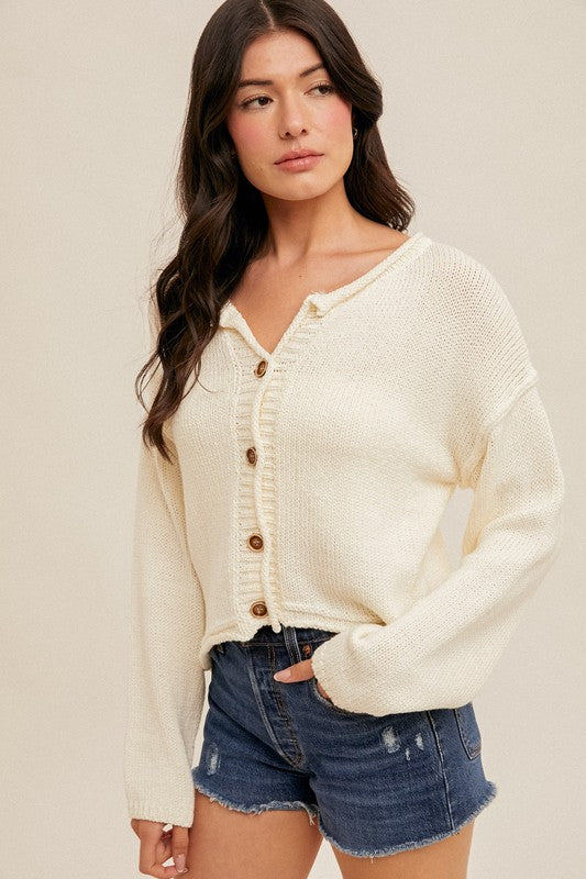 Slouchy Collared Button Cropped Cardigan
