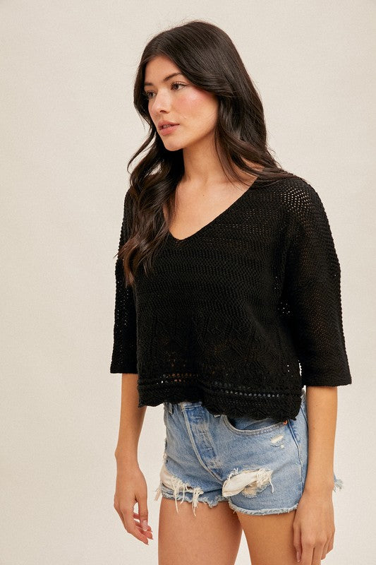 Cable Knit Pullover Black Sweater