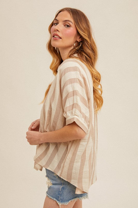 Quarter Split Oversized Polo Top Brown
