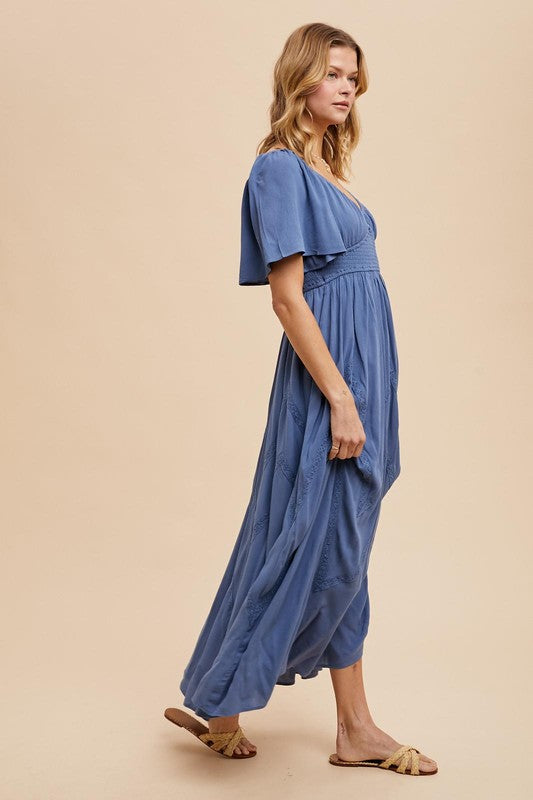 Elegant Floral Flutter Sleeve Maxi Dress
