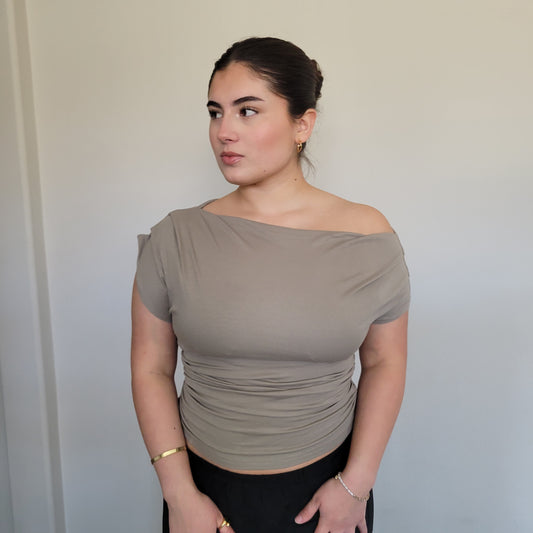 Thermal Drop Sleeves Top Dusty Camel