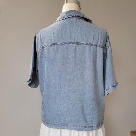 Cotton Plaid Button Down With Self Tie Top