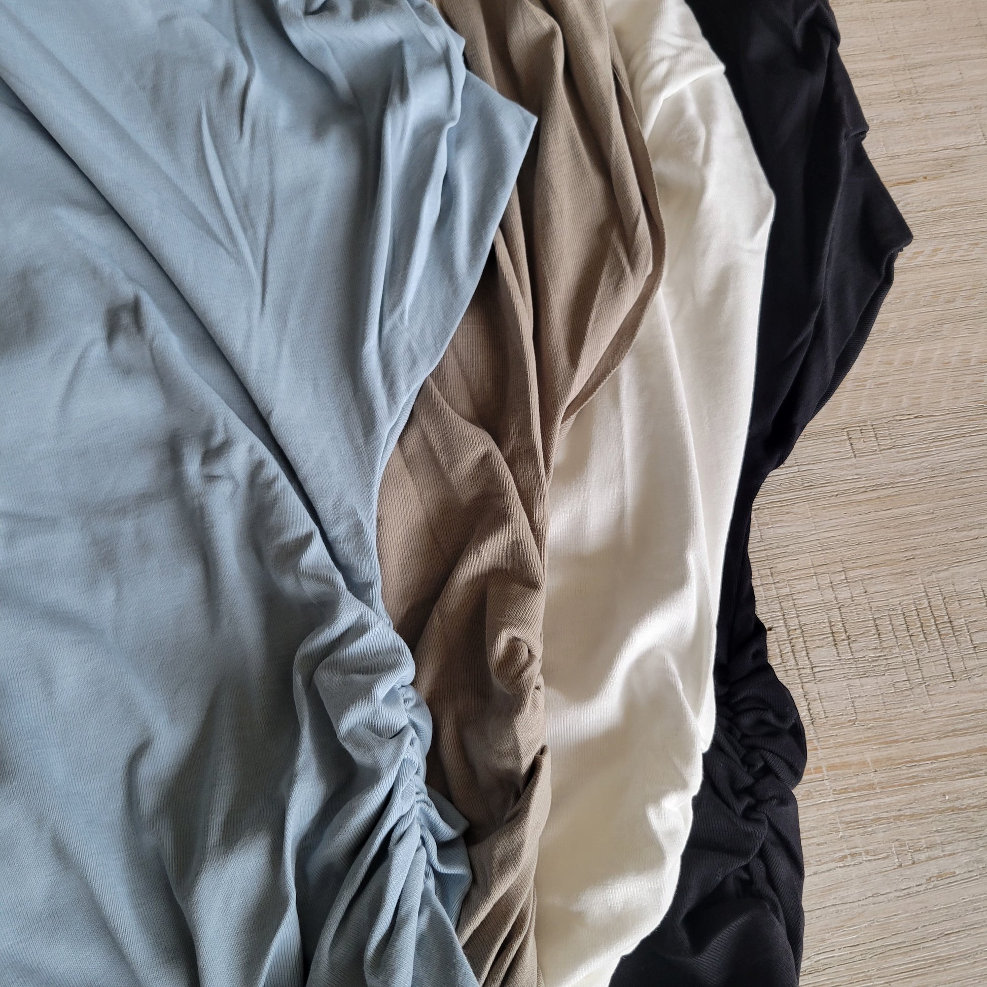ASYMETRICAL Neck Line Ruched Knit Top White