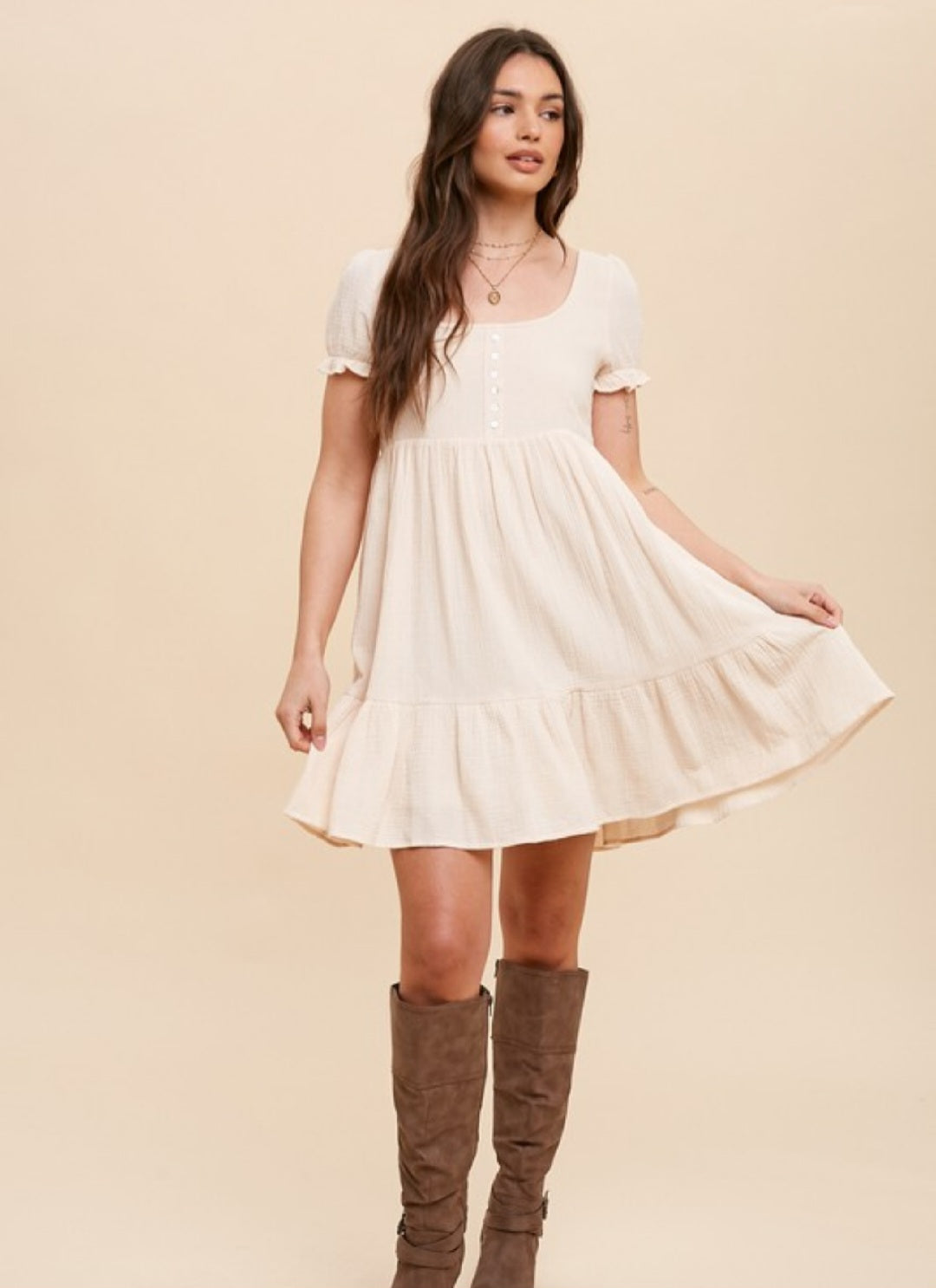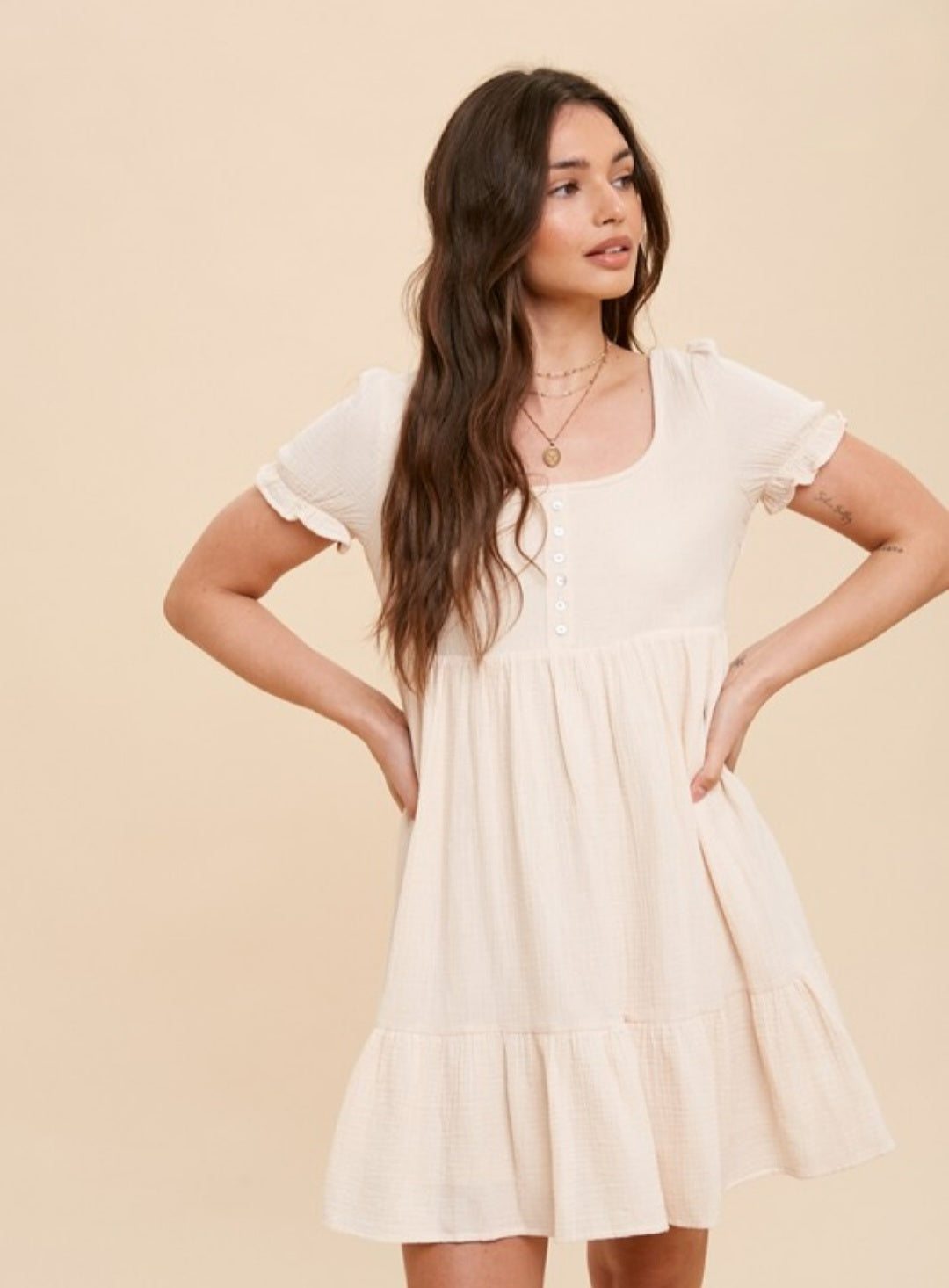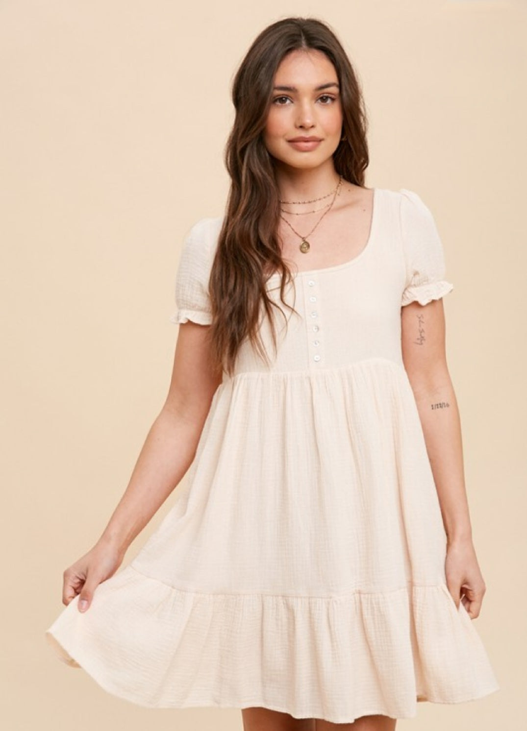 Cotton Gauze Babydoll Short Sleeve DRESS