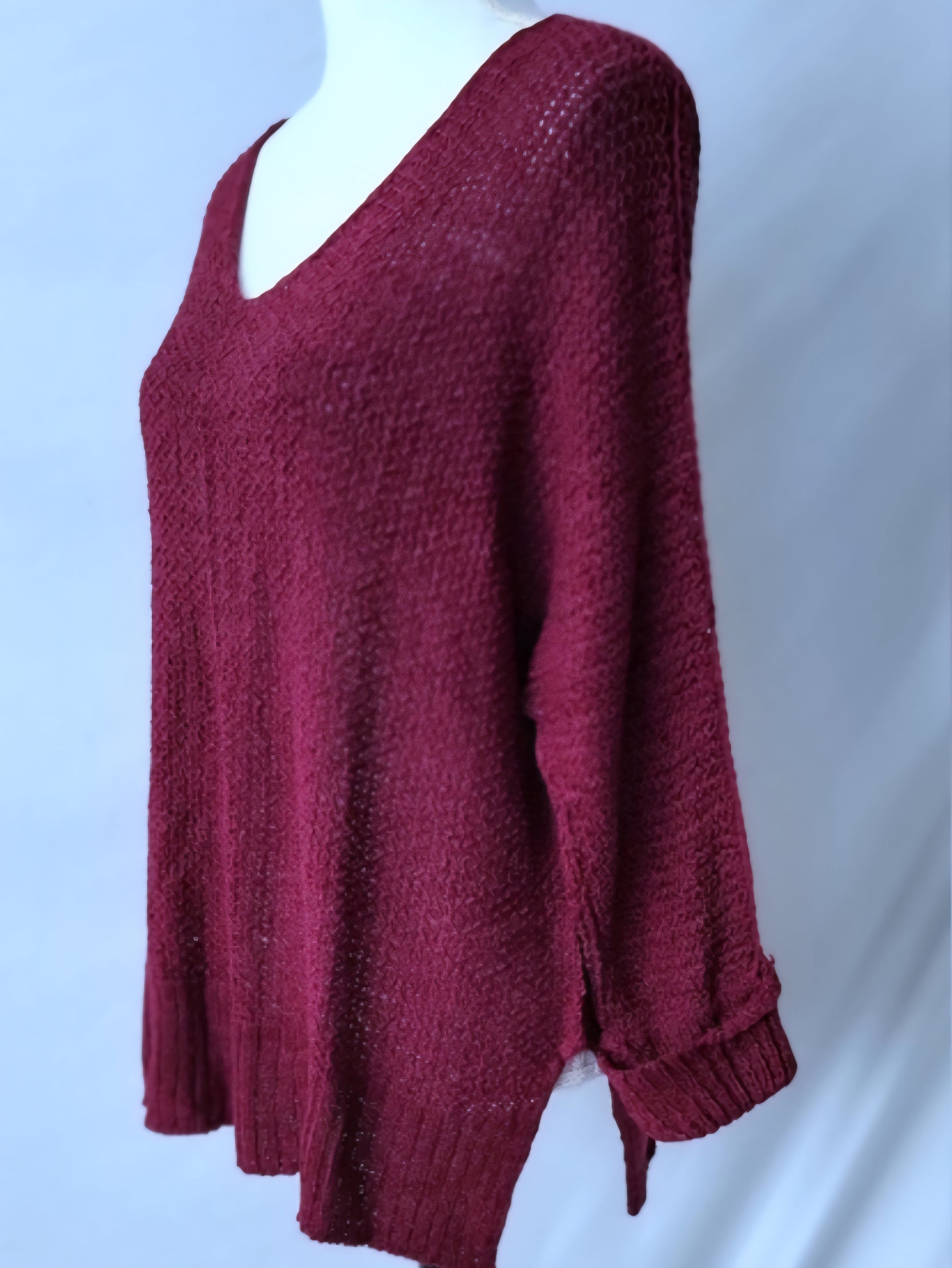 Crew Neck Knit Oversized Sweater-Cranberry