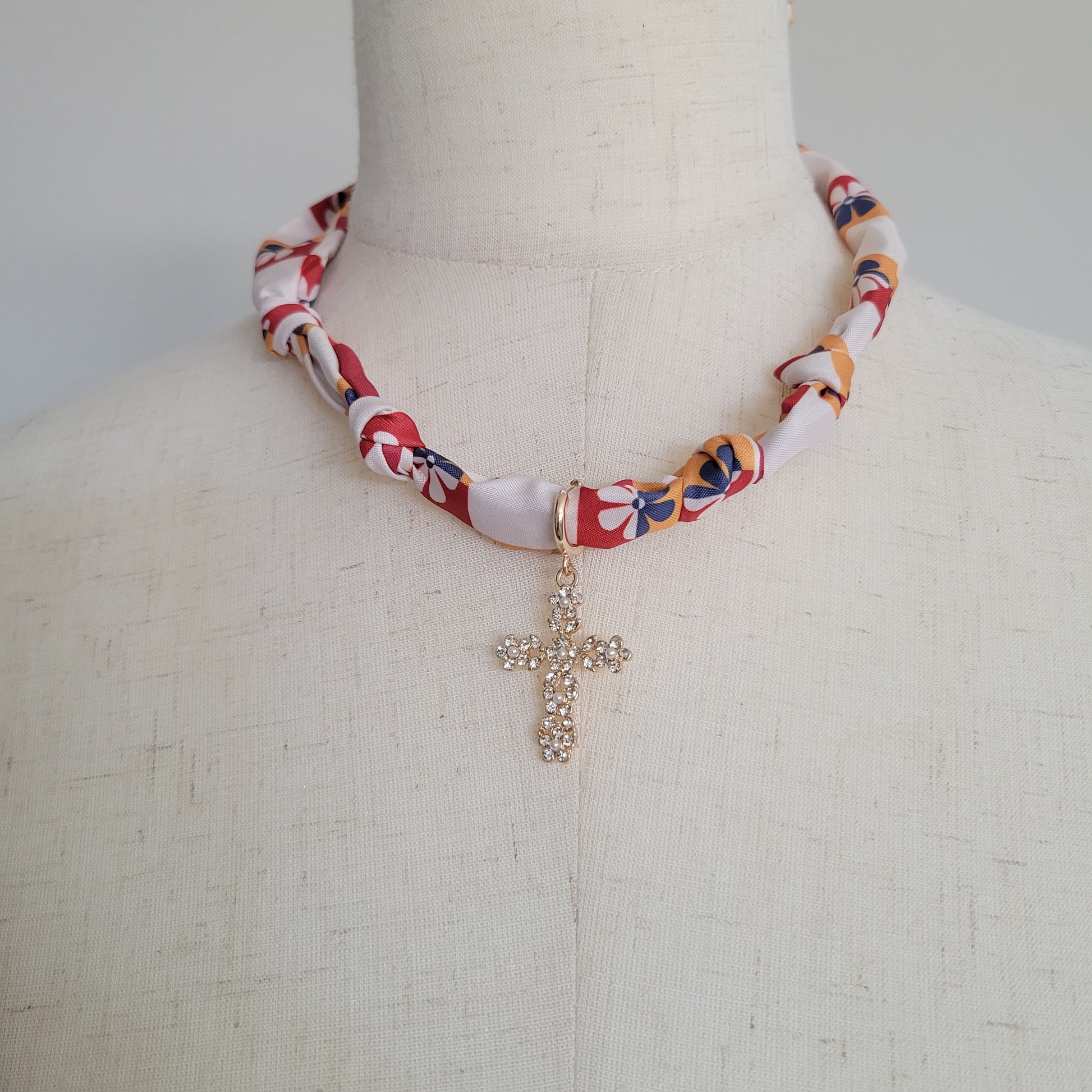 Handcrafted Scarf Interchangeable Cross Charm Necklace