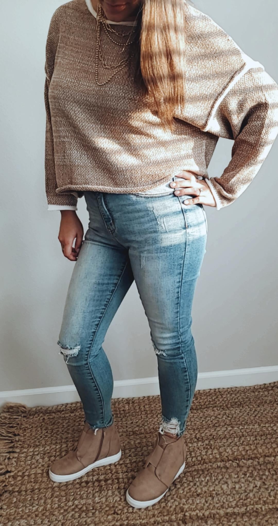These perfect fitting jeans will become your go-to! Features a high waist, skinny leg and ripped ankle for an edgy touch.