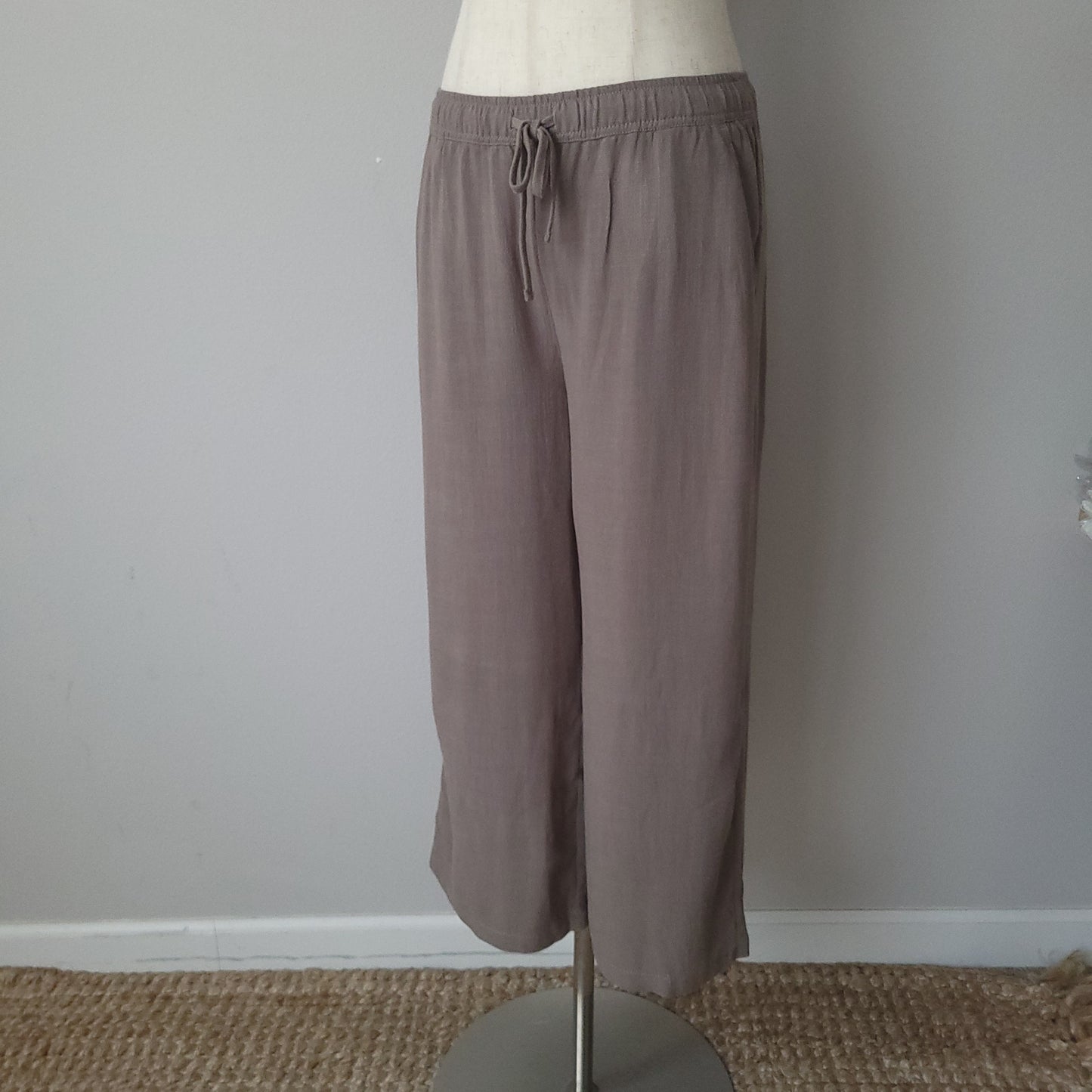 Linen Cropped Wide Leg Pants Khaki