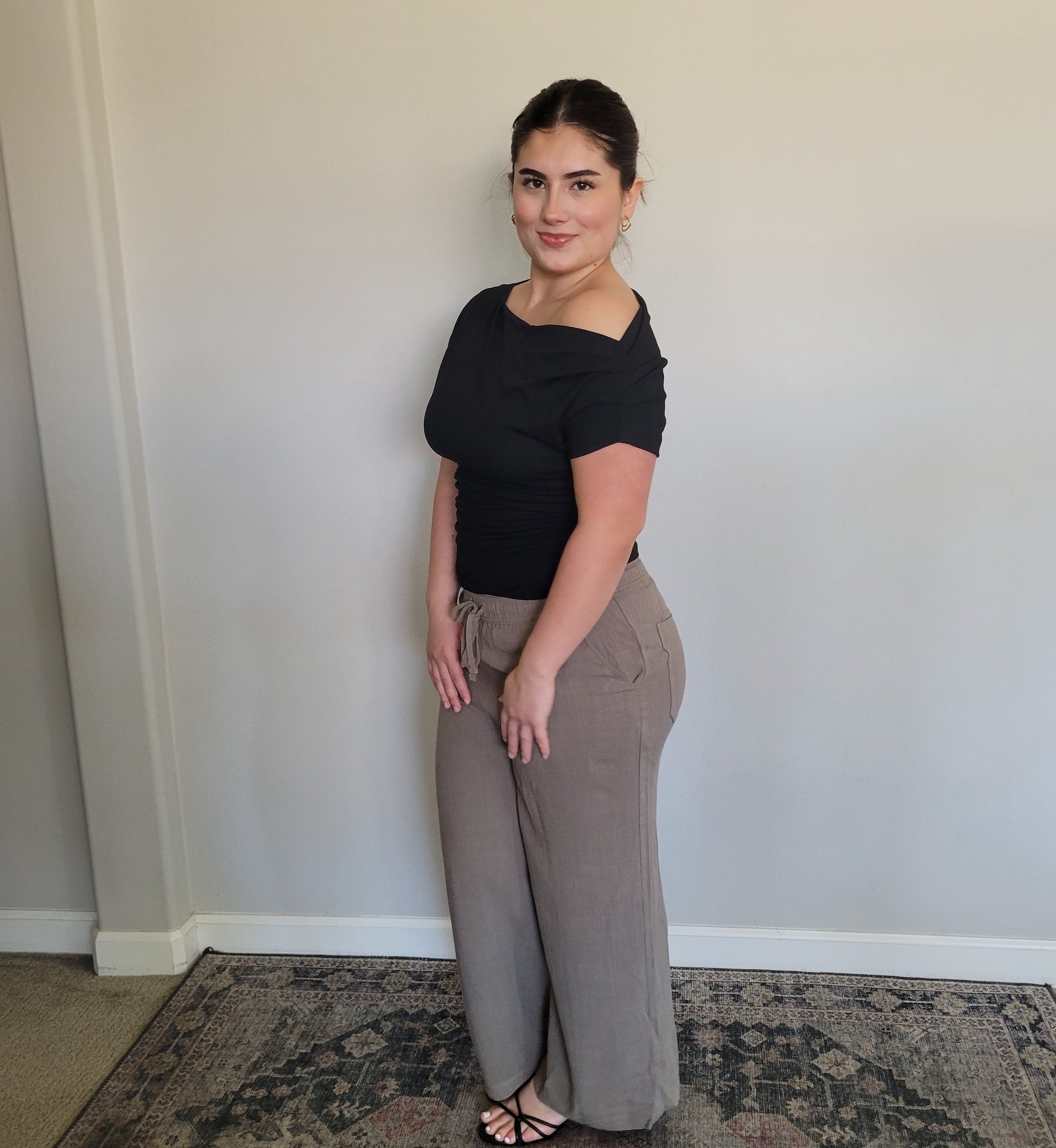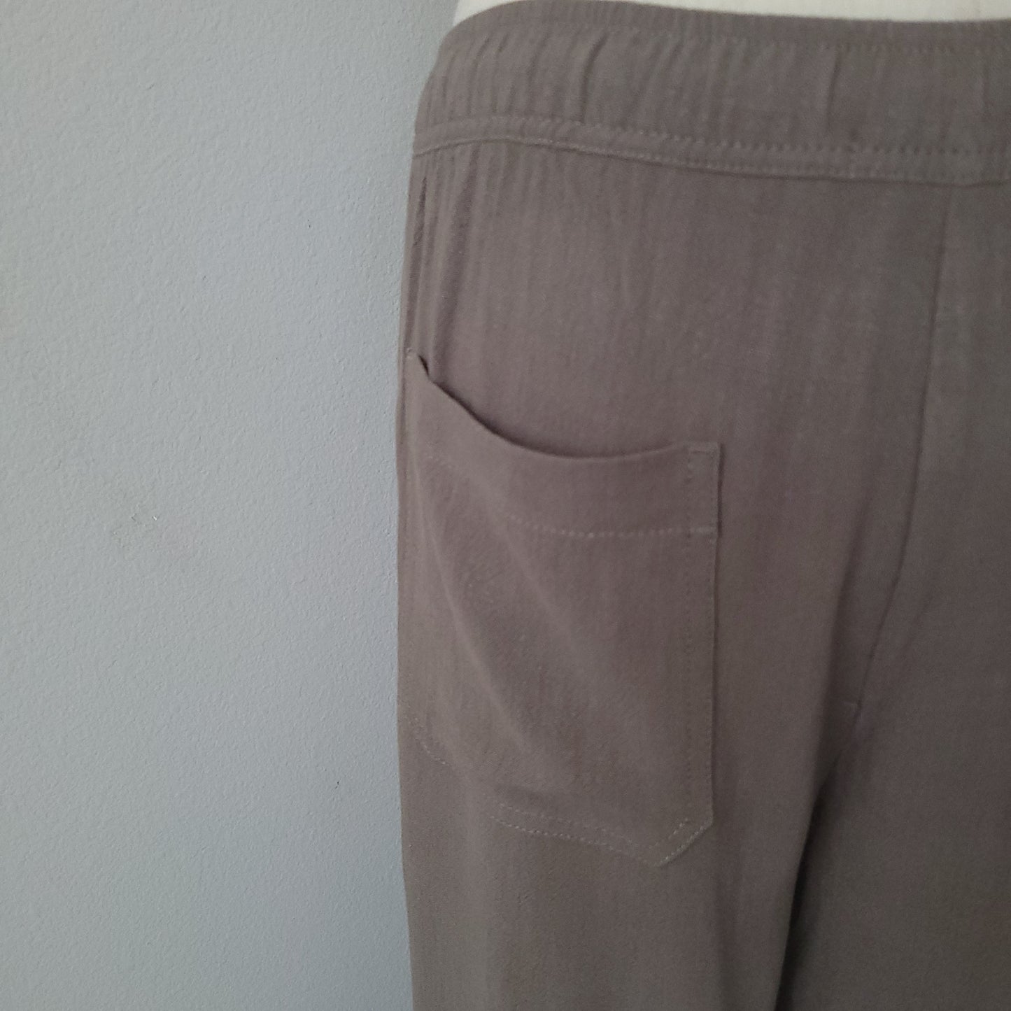 Elevate your wardrobe with our LINEN BLEND CROPPED WIDE LEG PANTS. These luxurious pants feature a drawstring elastic waist for a comfortable fit, while the back pockets add convenience. Crafted from a blend of linen and other premium materials, these pants exude sophistication and elegance.