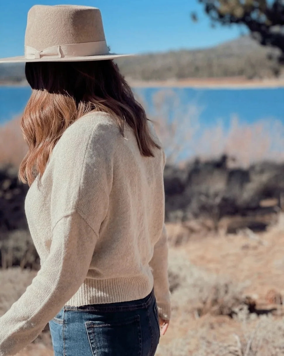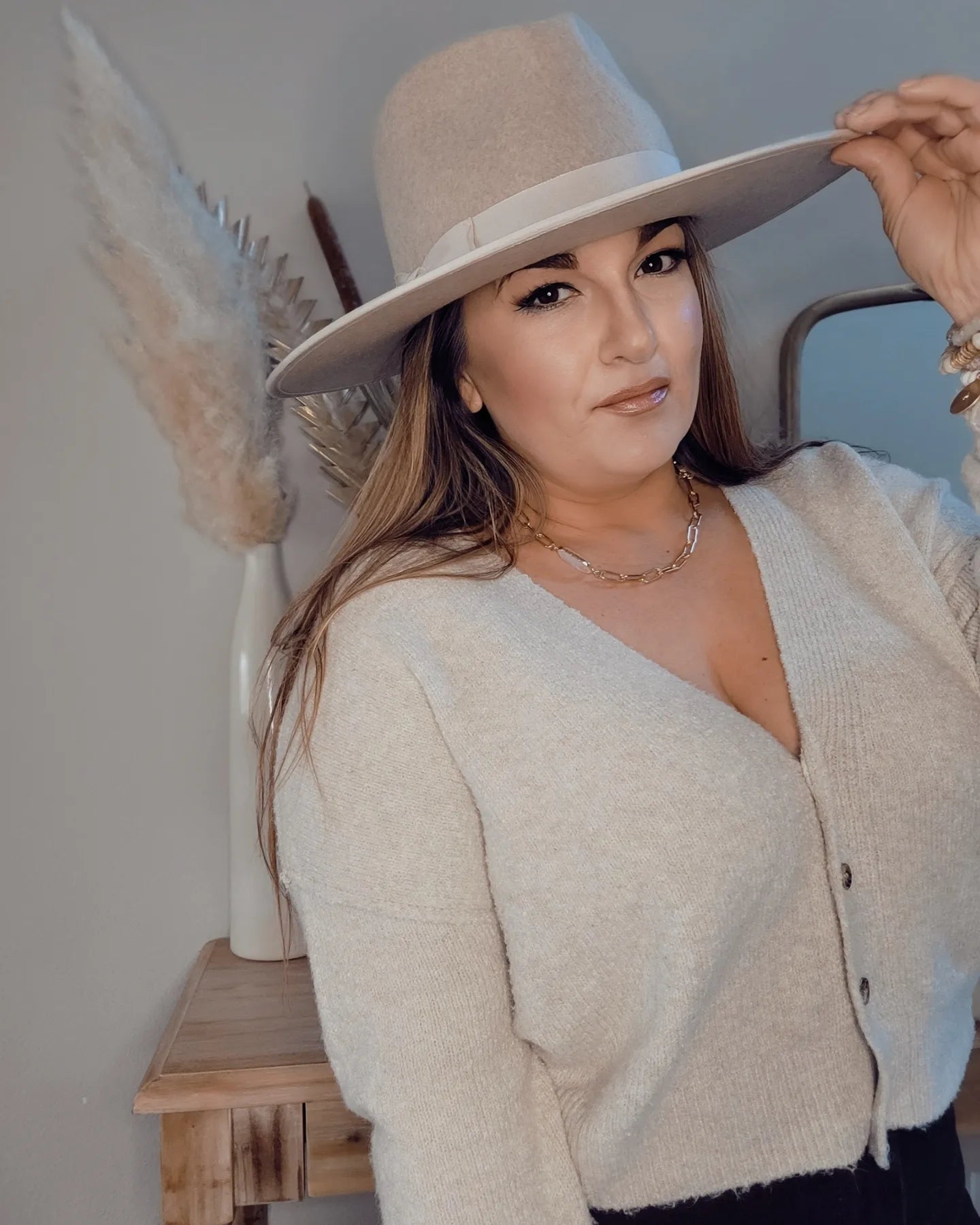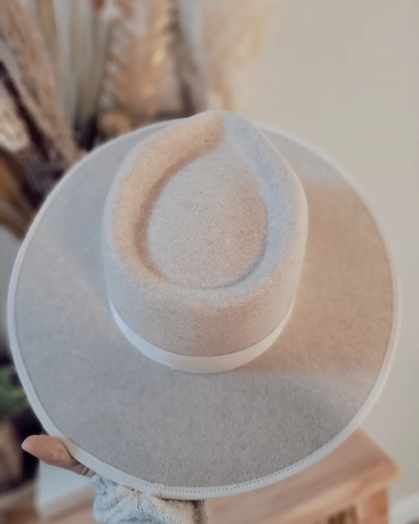 Inspired by Vintage designs , this hat is made to make a statement.This women's rancher fedora hat has a wide brim and crown trimmed with tonal grosgrain ribbon and a ultra stiff straight brim. As far as women's western hats go, this Monroe in Oatmeal is definitely one of our most popular designs.