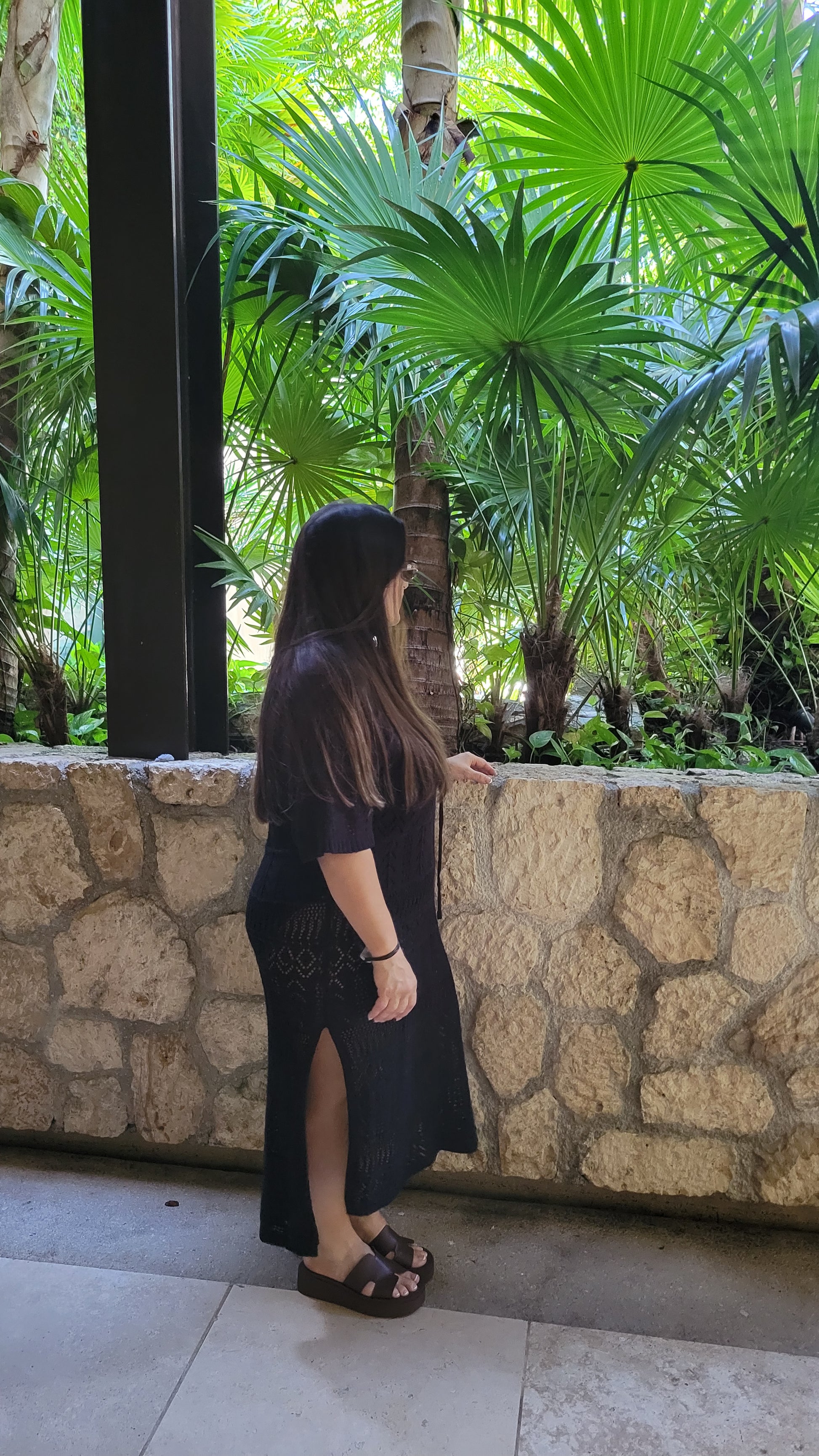 The Open-knit Relaxed Fit Beach Cover Up Dress is expertly designed for effortless beachside elegance. Its breathable open-knit fabric ensures comfort in warm weather, while the half sleeves and midi length provide balanced coverage and freedom of movement. The tie-front detail and side slits introduce subtle sophistication and a playful edge, making this dress an ideal choice for both leisurely beach strolls and casual summer outings.