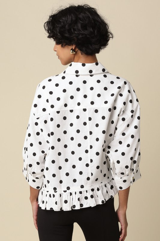 Evelyn Oversized Polka Dot Ruffle Hem Top